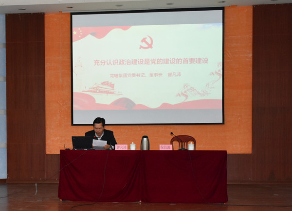 為進一步興起習近平新時代中國特色社會主義思想 “大學習”熱潮,2018年12月28日晚,龍軸集團在俱樂部會議室組織開展專題黨課講座。集團黨委書記、董事長曾凡沛作了題為《充分認識政治建設是黨的建設的首要建設》專題黨課,同時邀請漳州市國資委副調研員倪昌源講授《<習近平新時代中國特色社會主義思想>三十講學習心得》。集團高管、各黨總支、黨支部書記及支委、中層以上管理人員共130余人參加了黨課學習。