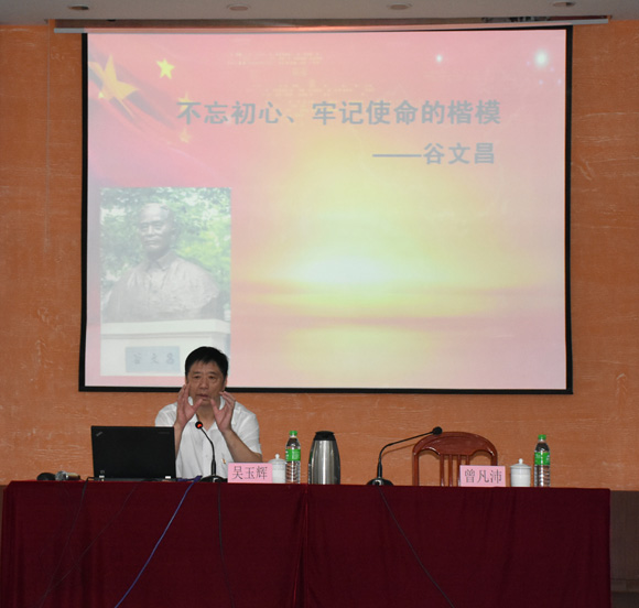 ????2019年9月23日上午,公司黨委書記、董事長曾凡沛在俱樂部會(huì)議室主持召開第二場(chǎng) “不忘初心、牢記使命”主題教育集中學(xué)習(xí)研討會(huì),邀請(qǐng)中共中央黨校特約研究員、中國作家協(xié)會(huì)會(huì)員吳玉輝講授《“不忘初心、牢記使命”的楷模——谷文昌》,公司領(lǐng)導(dǎo)、各黨總支、黨支部書記及支委、中層干部及主題教育領(lǐng)導(dǎo)小組辦公室成員參會(huì)。
