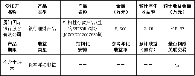 本次委托理財金額:委托廈門國際銀行理財5,300萬元。
