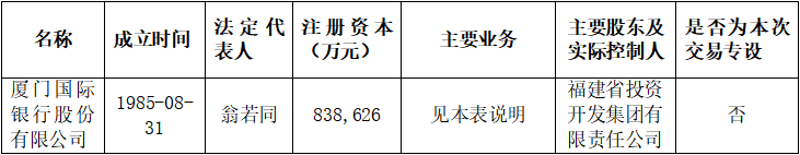 (一)廈門國際銀行股份有限公司為非上市金融機(jī)構(gòu),其基本信息如下: