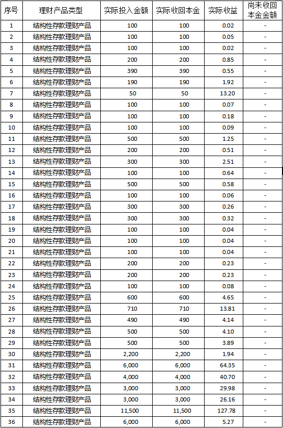 公司本次購買的保本收益型、結(jié)構(gòu)性存款產(chǎn)品屬于低風(fēng)險型產(chǎn)品,但金融市場受宏觀經(jīng)濟(jì)影響較大,不排除該項投資受到市場風(fēng)險、政策風(fēng)險、流動性風(fēng)險、不可抗力風(fēng)險等因素而影響預(yù)期收益。