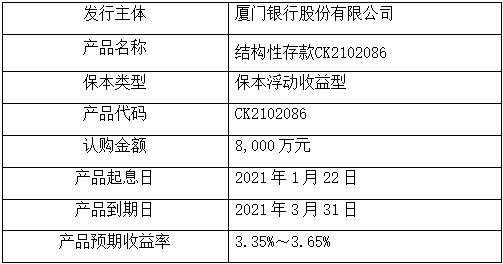 委托理財受托方:廈門銀行股份有限公司(以下簡稱“廈門銀行”)。