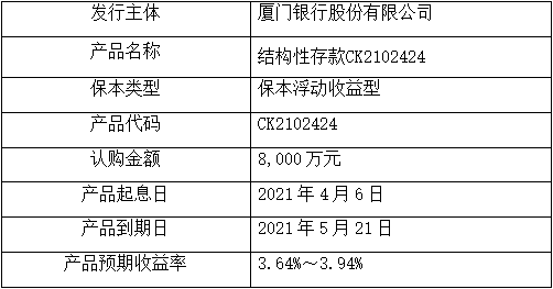 ?委托理財(cái)產(chǎn)品名稱:結(jié)構(gòu)性存款CK2102424。