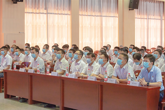 2021年7月1日,慶祝中國共產黨成立100周年大會在北京天安門廣場隆重舉行。龍軸集團黨委高度重視,把集中收聽收看慶祝中國共產黨成立100周年大會和深入學習宣傳貫徹習近平總書記的重要講話作為重大政治任務,提前謀劃統籌,周密部署安排。上午8時,公司領導班子、中層主管及業務主管共130余人在藍田三廠區龍軸集團大禮堂共同觀看“慶祝中國共產黨成立100周年大會”慶典。