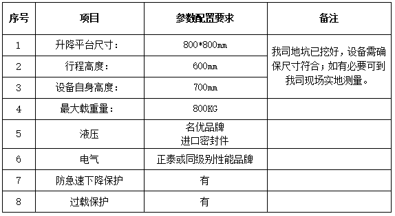 8. 0.8噸液壓升降平臺(tái)參數(shù)配置要求