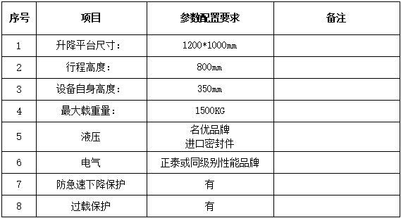 9、1.5噸液壓升降平臺(tái)參數(shù)配置要求