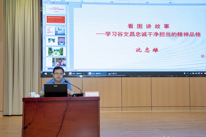 沈志雄老師圍繞“忠誠是谷文昌精神品格最厚重的基石”“干凈是谷文昌精神品格最自然的底色”“擔當是谷文昌精神品格最耀眼的華章”三個方面系統(tǒng)講述了谷文昌同志生平事跡,通過一幅幅珍貴的影像資料和一個個生動的事例,大家更全面地理解谷文昌精神品格的內(nèi)涵,受到了深刻的精神洗禮。