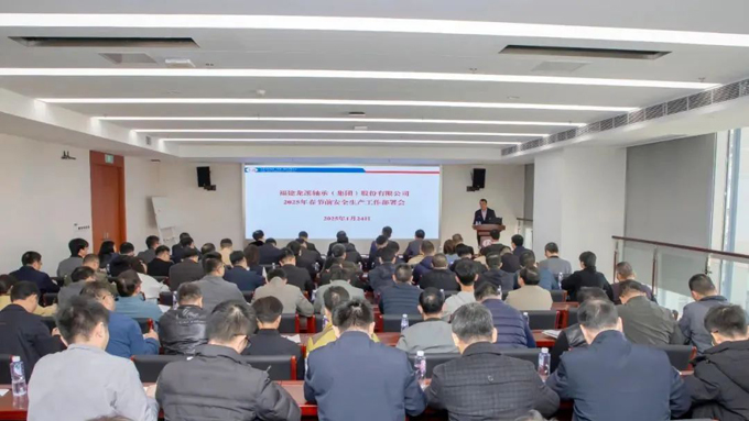 2025年1月24日,龍軸集團召開2025年春節前安全生產工作部署會,會議由集團黨委委員、副總經理張逸青主持,集團黨委書記、董事長陳晉輝作強調講話。集團高管、總經理助理、各部門和車間負責人、各權屬企業主要負責人參加會議。
