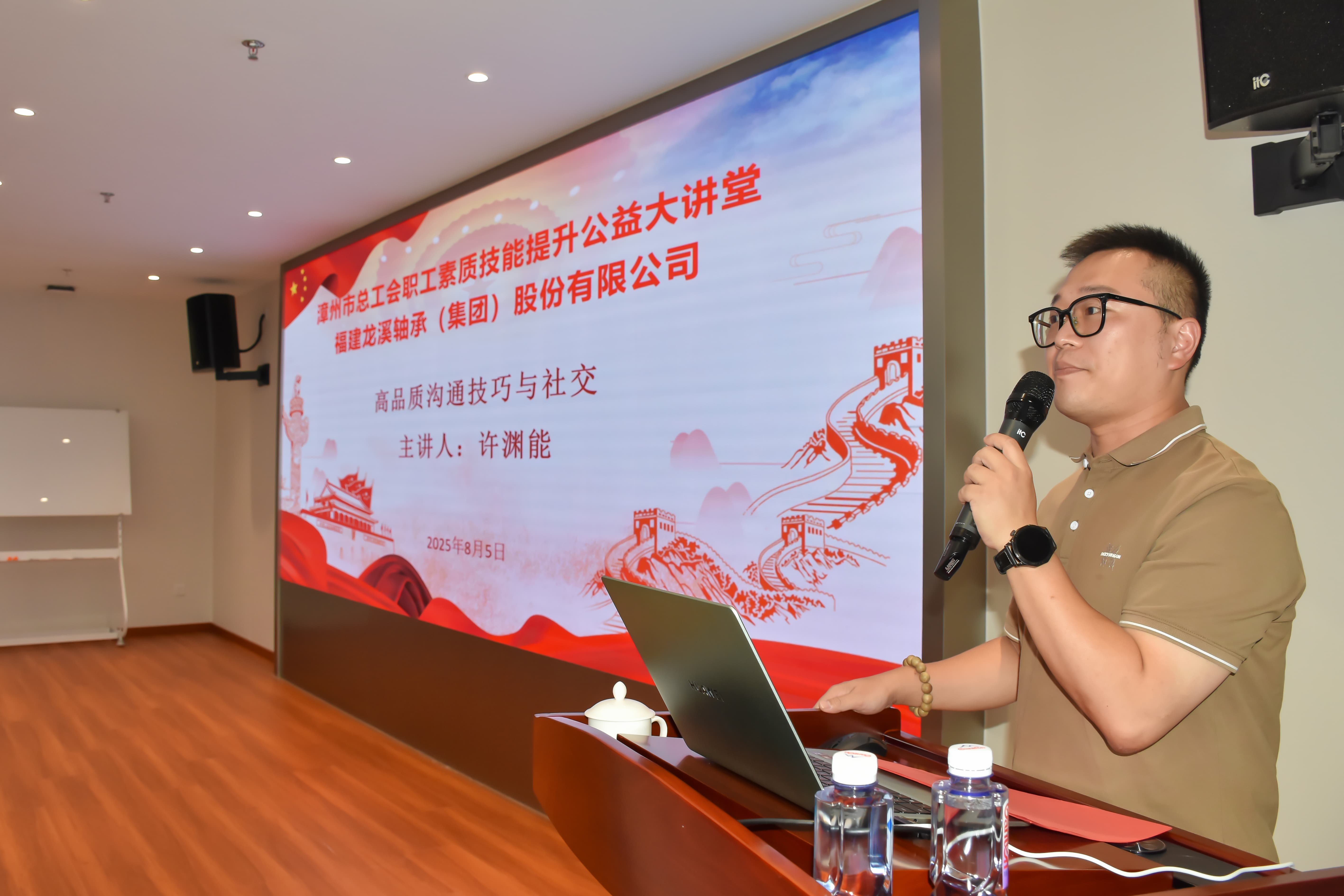 為進一步提升員工綜合素養,助力龍軸集團高質量發展。在漳州市總工會的大力支持下,公司于7-8月組織兩場員工素質提升公益大講堂專題培訓,邀請閩南師范大學新聞傳播學院副教授、碩士生導師羅志超和漳州理工職業學院衛生健康學院講師許淵能分別講授“從寫對到寫好-職場寫作進階”和“高品質溝通技巧與社交”課程,相關職能部門人員參加培訓。