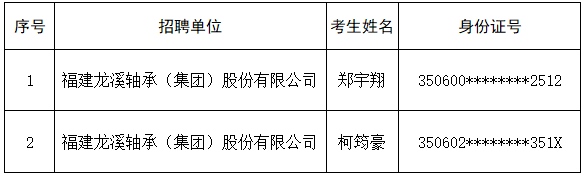 福建龍溪軸承(集團(tuán))股份有限公司關(guān)于2025年“市屬國有企業(yè)優(yōu)質(zhì)人才儲(chǔ)備庫”擬聘用人員的公示