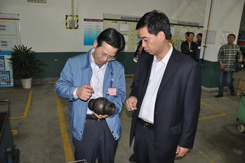 2017年5月9日,田力普(原國家知識產(chǎn)權(quán)司黨組書記、局長,左四)、李川(原福建省副省長,左一)到龍軸調(diào)研