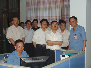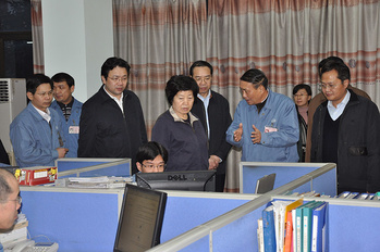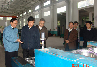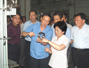 2009年3月30日,于文洲(時任福建省委副書記,左二)到龍軸考察指導,圖為參觀熱處理車間