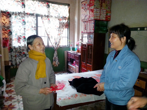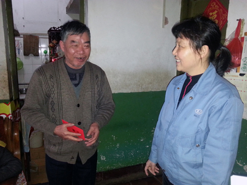 啟動儀式后,公司義工代表隊作為活動的第10支義工隊伍,在新橋社區(qū)工作人員帶領下,將愛心傳遞到了位于前鋒新村、南太武、新橋等地的5戶低保戶人員家中。義工代表們親切的笑臉,熱情的慰問為連日來的低溫帶來濃濃的暖意。