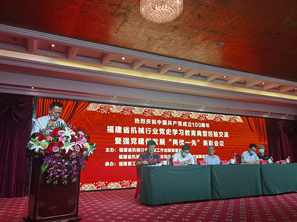 2021年7月29日,在福建省委組織部、省委“兩新”工委和省工信廳社會組織行業黨委的關心指導下,省機械行業慶祝中國共產黨成立100周年黨史學習教育典型經驗交流暨強黨建促發展“兩優一先”表彰會議在泉州隆重召開。