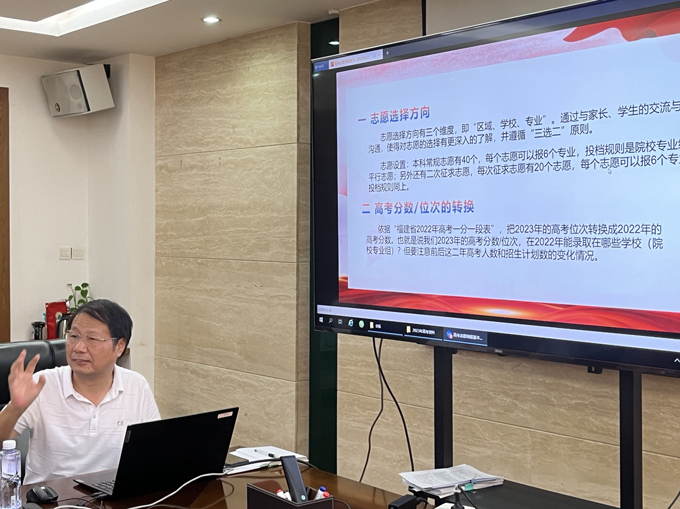 張躍豐結(jié)合歷年高考錄取大數(shù)據(jù)和事例,深入解讀了志愿填報的重要性、講解高考志愿填報方法和技巧,從“志愿選擇方向”“高考分?jǐn)?shù)/位次轉(zhuǎn)換”“初步篩擇學(xué)校”“‘沖、保、墊’精選學(xué)校”“填好‘志愿填報分析一覽表’”“打好底稿,進(jìn)行網(wǎng)上填報”等六方面為高考員工子女及家長進(jìn)行指導(dǎo),并面對面答疑解惑,受到了參會員工及其子女的一致好評。
