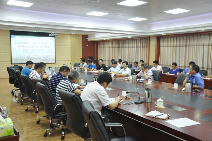 ????2017年5月12日,公司總會計(jì)師、董事會秘書曾四新主持召開2016年度及2017年第一季度集團(tuán)公司經(jīng)營分析會。集團(tuán)公司董事長曾凡沛、總經(jīng)理陳晉輝、監(jiān)事會主席鐘志剛、集團(tuán)各高管及永軸、三齒、紅旗、閩臺龍瑪、金昌龍、金馳等7家主要子公司高管及集團(tuán)公司發(fā)展計(jì)劃部、企業(yè)管理部、董事會辦公室、人力資源部、投資管理部、證券管理部、物資采購部、營銷中心、國際市場部、國內(nèi)市場部、生產(chǎn)部、財(cái)務(wù)會計(jì)部、審計(jì)部、監(jiān)察室等部門主管參加會議。