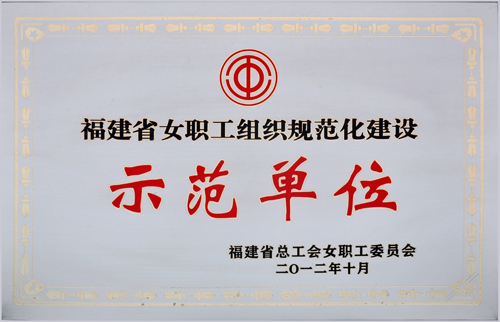 長期以來,公司女職工委員會以《中國工會章程》、《福建省女職工勞動保護條例》、《企業(yè)工會工作條例》為指導,團結和帶領廣大女職工積極投身到生產經營和各項工作中,深入開展了豐富多彩的各項活動,充分發(fā)揮女職工在企業(yè)建設中的作用,為公司持續(xù)、穩(wěn)定、協(xié)調發(fā)展做出了積極的貢獻。被評為福建省首批“女職工組織規(guī)范化建設示范單位”。