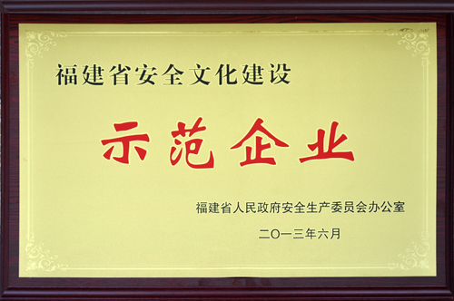 在以公司總經理許廈生擔任組長、公司黨委副書記兼安全辦主任張?zhí)┥鷵纬崭苯M長的安全文化建設示范企業(yè)創(chuàng)建工作小組的領導下,通過企業(yè)自評、省級安全文化示范企業(yè)核查專家組現(xiàn)場審核等程序,我司最終于2013年6月獲得“福建省安全文化建設示范企業(yè)”榮譽稱號。