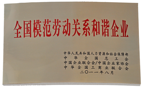公司榮獲“全國模范勞動關系和諧企業”稱號